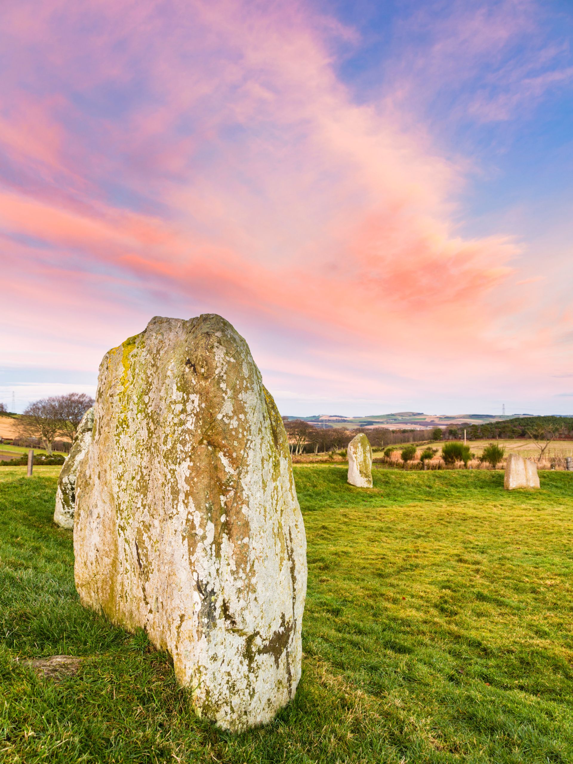 Step into a landscape that has witnessed thousands of years. At Broomend of Crichie, on a grassy field just outside the village of Aberchirder, you’ll encounter the earthworks of a venerable henge and the faint echoes of a stone circle that once stood here. Although only a few monoliths remain and the giant recumbent slabs typical of this region are gone, the setting still pulses with ancient purpose.
